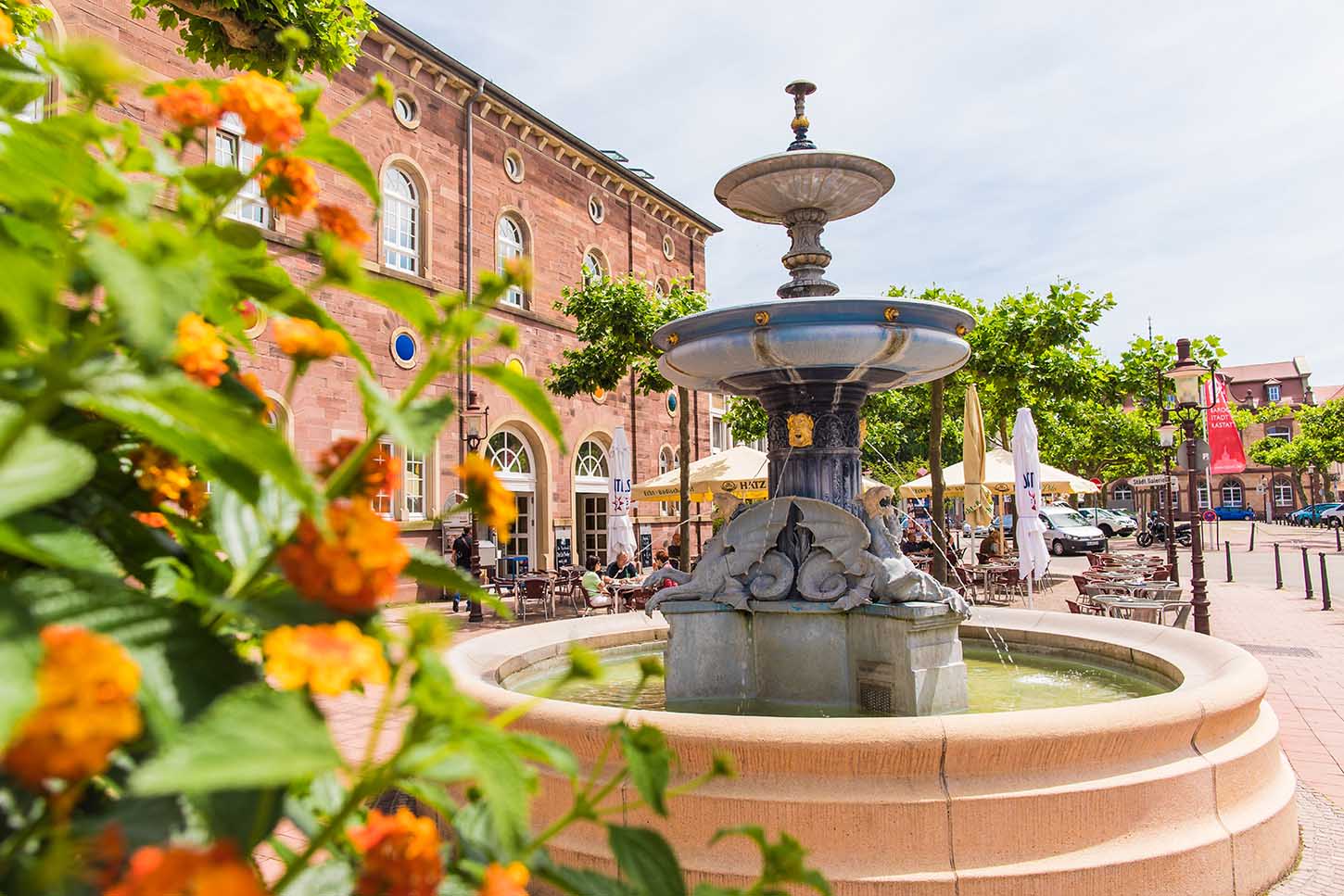 Ursprünglich befand sich der Pfeifer-Brunnen auf der Mittelachse der Kaiserstraße hinter dem Rathaus. Nach umfangreichen Sanierungsmaßnahmen steht der Pfeifferbrunnen seit dem Jahr 2005 vor der Fruchthalle.